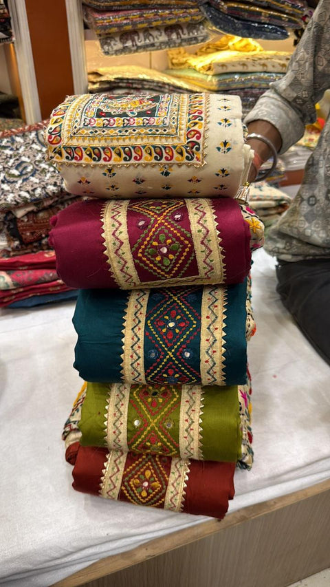 Handcrafted Embroidered Dress Material Set Cotton Silk Chanderi flower dupatta